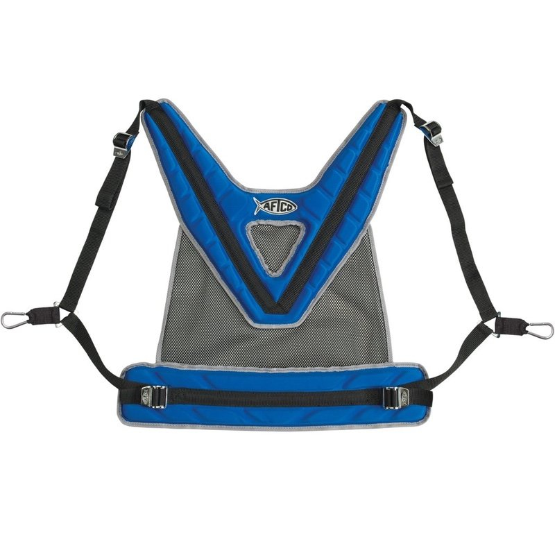 AFTCO MaxForce II Shoulder Harness are blue. They come with a mesh bag with grommets so you can wash your harness after use and then store it until your next fishing trip. Match it up with an AFTCO Socorro Fighting Belt.