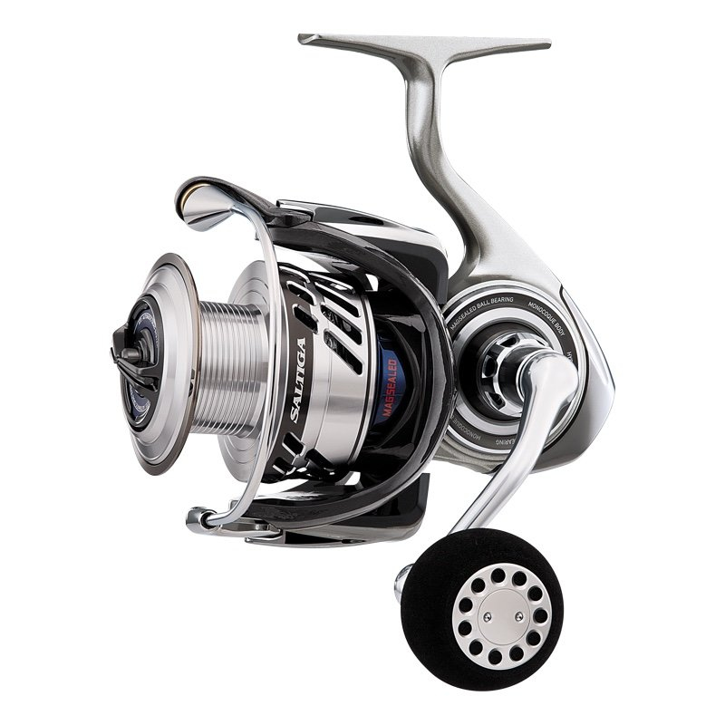 Daiwa Saltiga Bay Jigging Spinning Reels are available in 3500 and 4000 sizes. They share the same body. The 3500 has a 5.7:1 gear ratio while the 4000 has a 4.9:1 gear ratio. Made in Japan.