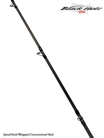 Black Hole USA Challenger Bank Spinning Rods are gray with a carbon-fiber wrap. They are available in five different models. Black Hole Rods are not labeled in the same way as rods from other manufacturers so pay attention to the line wt and lure wt to make sure you get the one that fits your needs. If you have any questions, please contact us and we will help you out.