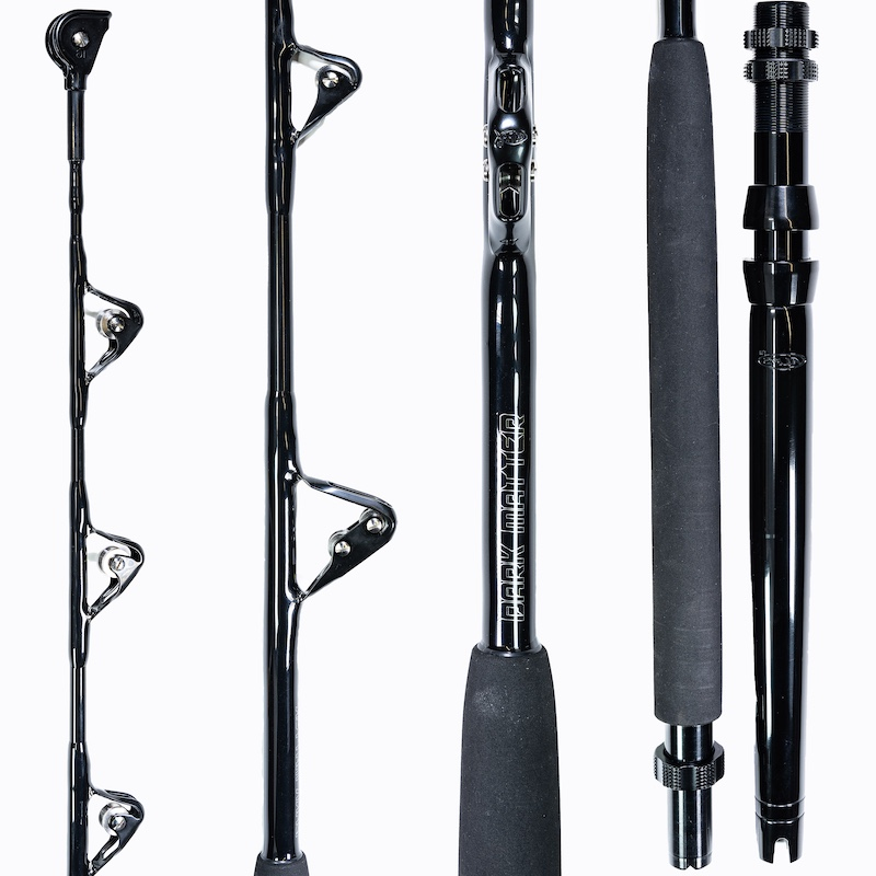 Dark Matter Custom Standup Rods are made in the USA and are designed to deliver the best in offshore performance. These rods are built on a lightweight yet powerful Calstar blank that has the right amount of flex so that it does a lot of the work when fighting a big tuna. They have been outfitted with top of the line Winthrop Express wind-on roller guides that are lighter in weight than other guides and allow your swivel to pass through them. The aluminum straight uni-butt is detachable so you can take your reels home with you or easily lock them up for safe keeping after a fun day on the water. We’ve fished and handled a lot of standup rods over the years and this is simply the best. If you love fishing offshore and want to do some serious trolling for tuna, outfit your boat with Dark Matter Custom Standup Rods. You are going to love them!