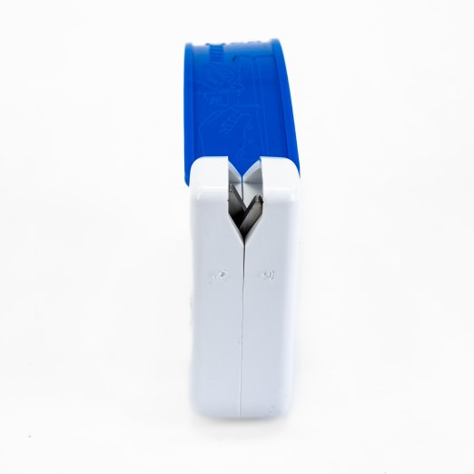 The AccuSharp Knife Sharpener is a fantastic piece of equipment. It out sharpens and out lasts much more expensive knife sharpeners. In less than ten seconds your knife blade goes from dull to sharp. There is no reason to own another knife sharpener than this one from AccuSharp. It is extremely easy to use, completely safe and works great with any knife. Everyone who works in the store has at least one. Great for sharpening your fishing knives and your cooking knives! This knife sharpener is dishwasher safe and replacement sharpening blades are available.